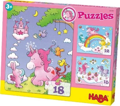 3er Puzzle-Set – Einhorn Glitzerglück – 12/15/18 Teile von HABA