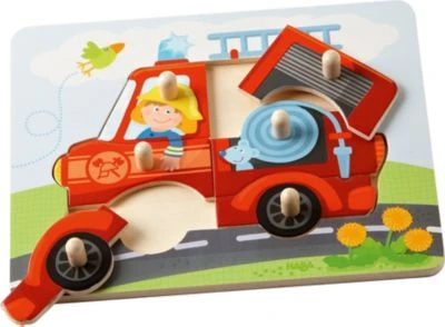 Tatü-tata, hier saust der tapfere Feuerwehrmann mit seiner Feuerwehrmaus zum Einsatz. Natürlich haben sie das Blaulicht eingeschaltet. Kleine Puzzlefreunde können das Feuerwehrauto aus 6 Puzzleteilen zusammensetzen. Ein schöner Einstieg ins Puzzeln