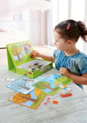 die fröhlich-bunte Magnetspiel-Box Jahreszeiten ist eine der vielseitigen Magnetspiel-Boxen von HABA