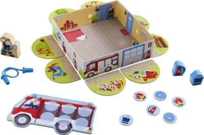 Es brennt in Habahausen! Doch um das Feuer löschen zu können, brauchen die Feuerwehrmänner Max und Anton Hilfe: Als Einsatzvorbereitung machen sich die Spieler mit den Ausrüstungs-Gegenständen der Feuerwehr vertraut. Dann ist ein gutes Gedächtnis gefragt: Wer findet Eimer, Feuerlöscher und Schlauch im Feuerwehrauto, um alle Brände zu löschen?
