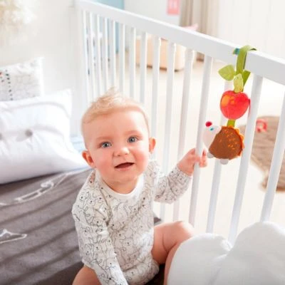 Das Hänge-Spielzeug von HABA hat die Gestalt eines niedlichen Igels. Es erfreut mit kindgerechtem Design schon die Allerkleinsten. Hänge-Spielzeug Igel von HABA mit lustigem Klapper-Effekt ab Geburt aus weichem Textil Mit einem Handgriff ist die Hängefigur am Babybett, an der Babyschale oder im Kinderwagen befestigt. Sie ist aus softem Textil gefertigt und hat genau die richtige Größe für kleine Hände. Die bunten Farben und gut erkennbaren Motive laden zu ausgiebiger Beschäftigung ein. So trainiert der Nachwuchs seine Motorik und Auge-Hand-Koordination und ist auf Ausfahrten bestens unterhalten.