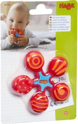 Gefertigt aus robustem Silikon, kommt der in Stern-Form designte Greifling von HABA auch als Zahnungshilfe zum Einsatz. Greifling im Stern-Design von HABA auch als Zahnungshilfe verwendbar ab 6 Monaten aus Silikon Mit der Stern-Form und seinen abgerundeten Kanten lässt sich der Greifling auch von kleinen Händen gut greifen. Leuchtende Farben und unterschiedlich strukturierte Oberflächen sprechen den Seh- und Tastsinn der Kleinsten an. Da der Greifling aus Silikon gefertigt ist, kann er bedenkenlos in den Mund genommen werden. Beginnt der Nachwuchs zu zahnen, verschafft das Beißen auf dem Silikon-Stern Linderung.