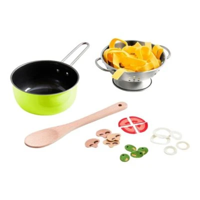 Mediterrane Küche ist gesund, macht Spaß und ist im Handumdrehen zubereitet – das lernen schon kleine Feinschmecker ab 3 Jahren mit dem umfangreichen Koch-Set Italienische Küche von HABA. Koch-Set Italienische Küche mit Kochtopf, Kochlöffel und Sieb inklusive Nudeln, Tomaten, Pilze, Oliven und Zwiebelringe aus Textil ab 3 Jahren Edelstahl, Holz, Polyester Alle traditionellen Zutaten sind dabei. Aus appetitlich detailgetreu gestalteten Tomaten, Champignons, Oliven, Zwiebeln und natürlich sonnengelber Pasta zaubern kreative kleine Köche immer wieder neue Lieblingsgerichte. Kochtopf, Nudelsieb und Kochlöffel in handlicher Größe und zeitlos schönem Design vervollständigen jede Kinderküche optimal. In fantasievollem Rollenspiel trainieren Kinder spielerisch ihre Feinmotorik und erobern kulinarische Welten. Wir wünschen: „Guten Appetit!“