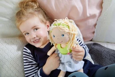 Spielen, kuscheln, trösten oder Abenteuer erleben – mit der Puppe Jil von HABA ist vieles möglich. Puppe Jil, 30cm ab 18 Monaten mit schönem Kleid und Blumenhaarband weicher Körper zum Schmusen und Kuscheln Kleid kann dank Klettverschluss beliebig an- und ausgezogen werden Dank ihrem wattierten Körper und den Haaren aus weicher Chenille macht auch das Schmusen großen Spaß! Die hübsche Puppe Jil animiert Babys und Kleinkinder ab 18 Monaten zu fantasievollen Rollenspielen: Sie hat ein traumhaft schönes Kleid an, das dank Klettverschluss schnell mal ausgezogen werden kann. Ihre Schuhe sind angenäht, so dass sie beim Spielen nicht verloren gehen können. Da Jil die Natur liebt und gerne Blumen pflückt, schmückt sie ihr Haar am liebsten mit einem Blumenhaarband. Die bezaubernde HABA-Puppe Jil lässt die Herzen aller jungen Puppeneltern höher schlagen.