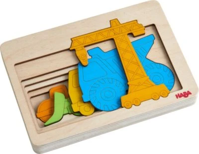 Da leuchten Kinder-Augen! Bei dem HABA Holzpuzzle Baustellenfahrzeuge gibt es Bagger, Walzen, Kipper und Kran mit vielen Details zu entdecken. Welches ist das größte unter den tollen Fahrzeugen? Das finden Kinder ab 18 Montanen beim Puzzeln heraus und üben spielerisch Größenverhältnisse, Formen und Farben zu unterscheiden. Jedes der 5 Puzzleteile passt an eine ganz bestimmte Stelle in dem Puzzle-Rahmen. Wer die Formen richtig zuordnet und alle Fahrzeuge an ihren Platz puzzelt ist König der Baustelle! Ein spannendes erstes Schichtenpuzzle für Jungen und Mädchen in bewährter HABA Qualität. 183cm x 127cm x 28cm