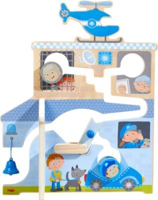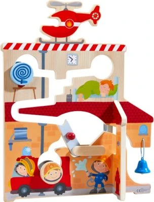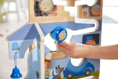 Das Motorikspiel Im Einsatz von HABA für Kinder ab 18 Monaten bringt gleich zwei Spielwelten mit für spannende Abenteuer mit Feuerwehr und Polizei