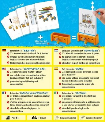 Neue Karten, neuer Rätsel-Spaß für Logic! CASE-Fans! Mit dieser Erweiterung für das beliebte Logic! CASE Starter Set kommen 77 neue Bilderrätsel für alle kleinen Knobelmeister*innen. Das Besondere: In der Kombination mit dem Starter Set können die kleinen Logic-Fans ihre Antworten selbst überprüfen. Kann die Karte hinausgezogen werden aus dem Kästchen mit dem Holzstift, so ist die Antwort richtig. Bleibt sie stecken muss noch einmal nachgedacht werden. Mit dem Logic! CASE Extension Set – „Baustelle“ von Haba kommt ein neues Rate-Level.