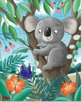 Für tierisch großes Puzzle-Vergnügen sorgt HABA mit den Puzzles Koala, Faultier & Co. Die wunderschönen Tierbilder laden immer wieder zum Puzzeln ein. Drei klassische Puzzles aus 24 Teilen zeigen einen knuffigen Koala, ein freundliches Faultier und zwei flauschige Alpakas. Farbenfrohe Pflanzen, kleine Tiere und viele weitere Details helfen beim Zuordnen. Auf den farbenfrohen Puzzle-Motiven gibt es jede Menge zu entdecken. So bleibt das Puzzeln für Kinder ab 4 Jahren lange spannend. Die Teile der HABA Kinderpuzzles bestehen aus stabiler Pappe und lassen sich gut von kleinen Fingern greifen.