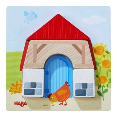 Mit dem Zuordnungsspiel Bauernhof von Haba lernen Kinder ab 18 Monaten spielerisch unterschiedliche Formen und Farben kennen. Zuordnungsspiel Bauernhof von Haba 3 Motivplatten und 14 Plättchen aus Holz ab 18 Monaten geeignet Ist das der Bauch der Kuh? Und wo sitzt der Hahn? Die Zuordnung der 14 Holzbausteine in die passenden Aussparungen auf den drei Motivplatten macht nicht nur viel Spaß, sondern schult auch spielerisch die Feinmotorik.